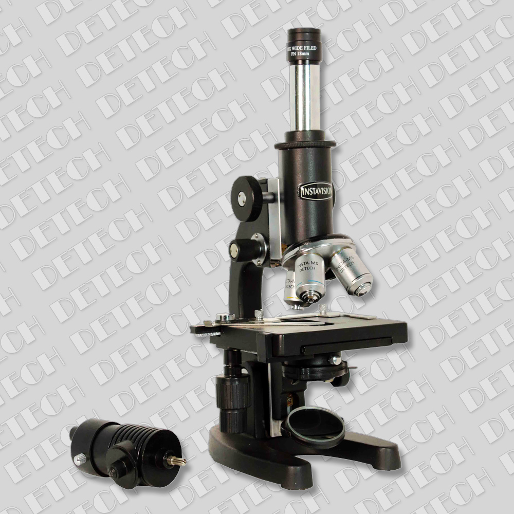 Magnification 100x – 1000x. Feature include separate coarse & fine adjustment, square stage with COAXIAL MECHNICAL STAGE, with convenient adjustment for manipulation of slides & Plano-concave mirror in adjustable fork mount, Sub-stage Abbe Condenser (N.A. 1.25) focusable with rack and pinion fitted with an iris diaphragm & filter holder, triple revolving nose piece, Microscope is inclined upto 90 degree with mechanical tube length 160mm.
