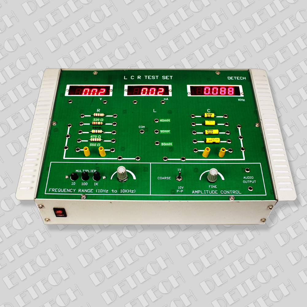 Complete with audio oscillator – sine wave 0-10V p-p 10KHz with digital frequency counter, digital AC voltmeter, digital AC ammeter or voltmeter, digital frequency counter, different values of L, C & R. Complete in all respect with detailed manual and experiment video.